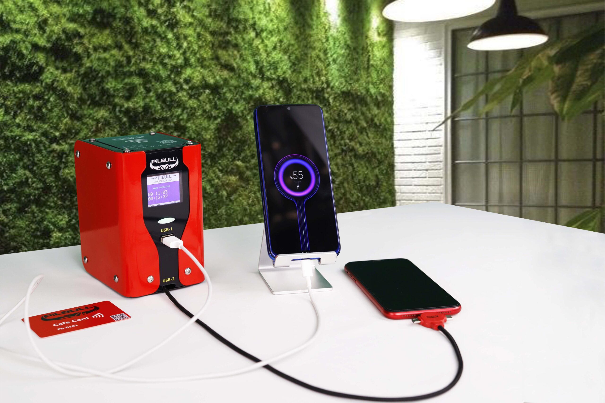 Pilbull Chargematic is a paid operated charger, that is used at the Cafes, Restaurants and wherever, when is Phone charging required.